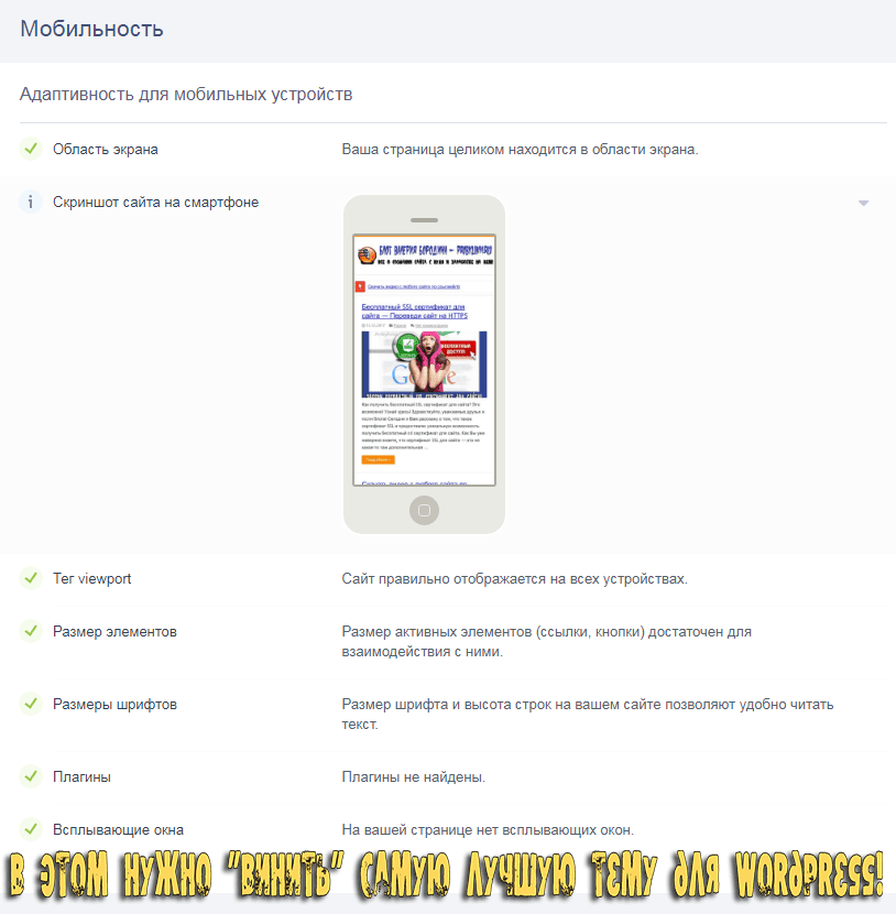 - Мне удалось добиться положительных SEO результатов, благодаря установке адаптивной темы оформления на сайте. Вот мои результаты на скриншоте: