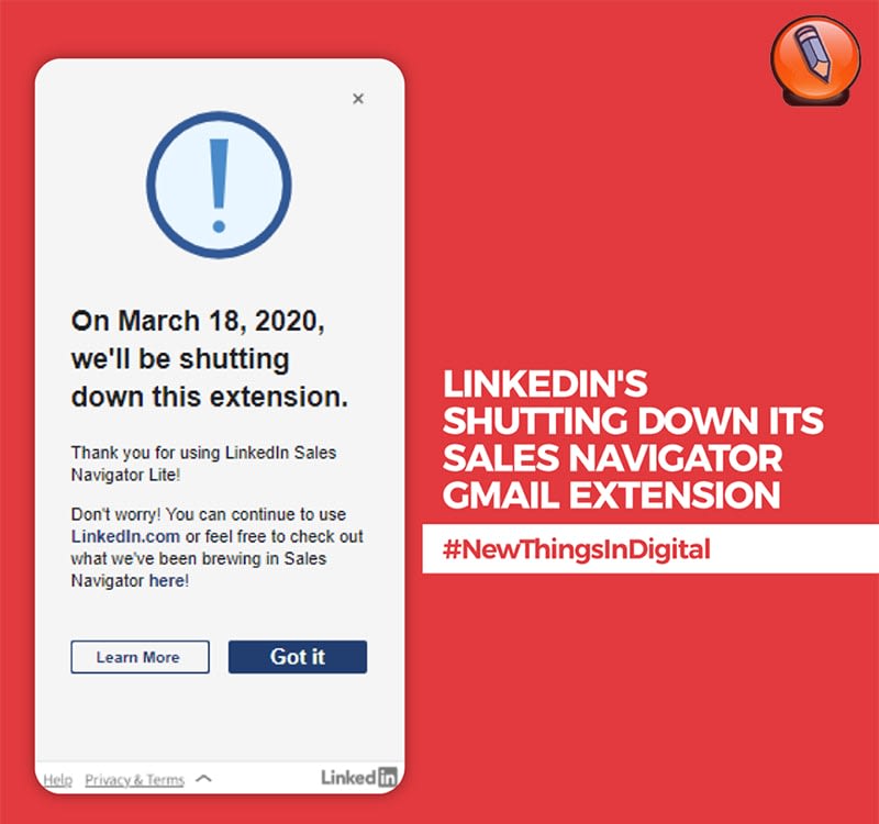 29. Цифровые Новости Февраля 2020: LinkedIn закрывает свое расширение Gmail для навигатора продаж