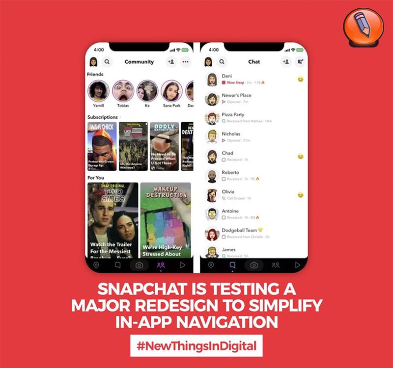 21. Snapchat тестирует крупный редизайн для упрощения навигации в приложении