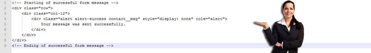 Вы создали стандартную форму, которая будет собирать имя, адрес электронной почты, телефон, тему и сообщение. Вы можете придать своей HTML-форме дизайн, который Вам нравится, с помощью Bootstrap, это ваше дело. Здесь мы сделали основное. Вы можете заметить, что все поля имеют required атрибут, который будет препятствовать отправке формы, если какое-либо из этих полей останется пустым. Помните, что следующий фрагмент кода, который Вы видите выше (также), предназначен только для отображения сообщения об успехе или ошибке.
