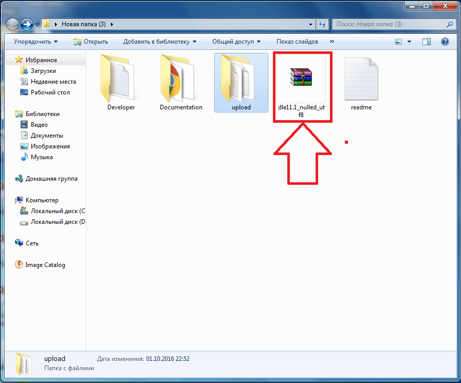 Переходим к скачанному вами архиву DataLife Engine (dle) и распаковываем его: