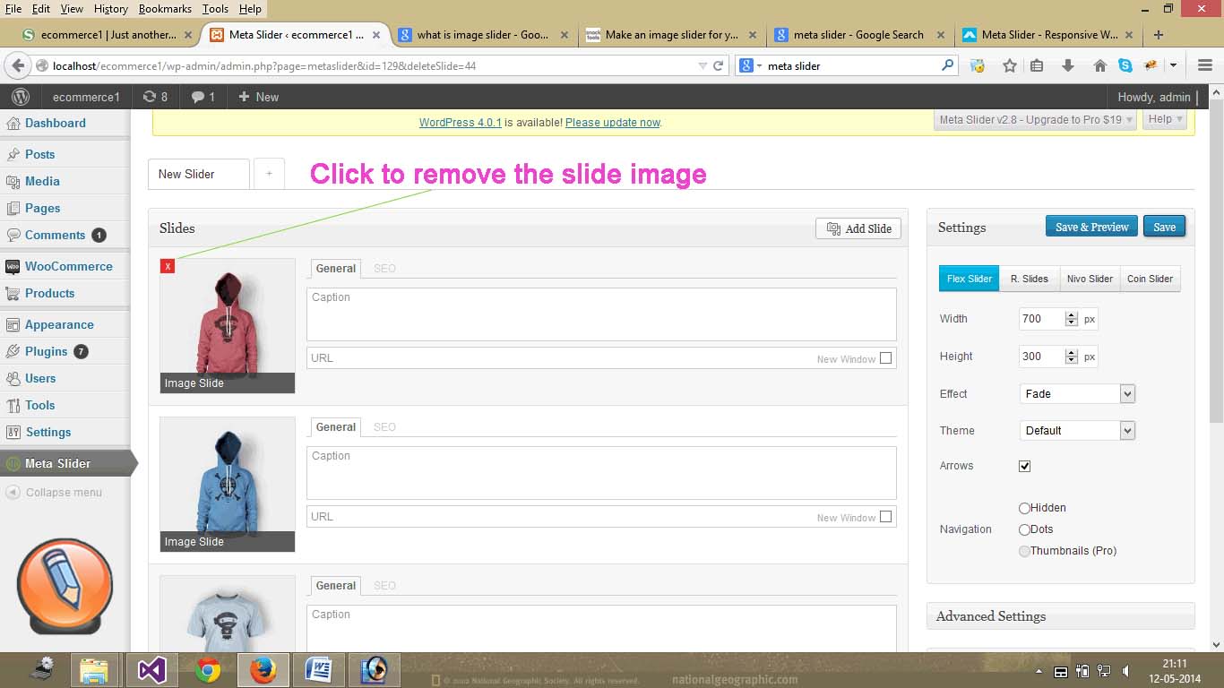 Обратите внимание: чтобы удалить любое изображение слайда, наведите указатель мыши на это изображение. Затем Вы увидите квадратную область с крестиком красного цвета, просто щелкните ее, чтобы удалить слайд. Вы также можете изменить положение слайда, перетащив слайд вверх или вниз.
