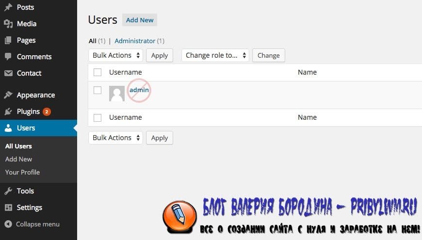 Когда вы устанавливаете WordPress, он создает первого суперпользователя сайта с именем пользователя «admin». Эксперты говорят, что это имя входа по умолчанию является риском для безопасности вашего сайта, потому что кибер-атакующие могут попытаться взломать ваш сайт автоматическими сценариями, которые пытаются войти на сайт, используя общее имя пользователя «admin».