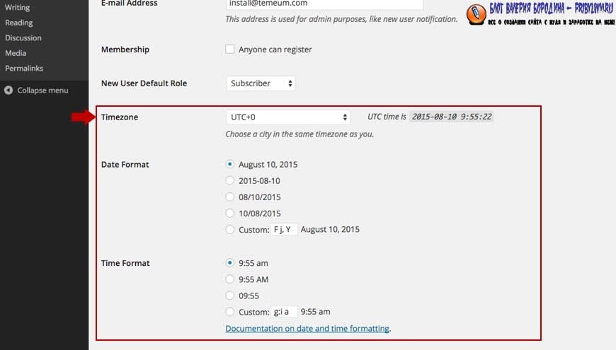Выберите часовой пояс по умолчанию для опубликованных сообщений вашего сайта, запланированных сообщений или другого содержимого. Раздел «Общие» в меню «Настройки» предоставляет возможность выбора и обновления часового пояса сайта.