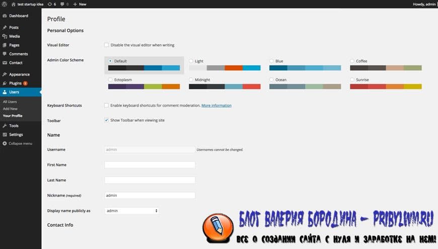 После того как вы выполнили вышеуказанные задачи, теперь организуйте свою учетную запись WordPress. Измените информацию своего профиля в меню «Пользователи» на панели управления.