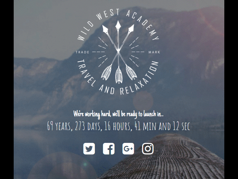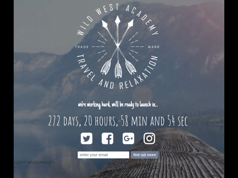 html, body { background:url('../img/bg.jpg') center center no-repeat; height: 100%; background-size:cover; } #logo img { margin:0 auto !important; padding-top:20px; } #intro p { color: white; text-align:center; font-family: 'Just Another Hand', cursive; font-size:1.8em; } #counter .countdown { text-align:center; color:white; font-family: 'Amatic SC', cursive; font-size:3em; margin:-15px 0 0; } #icons { text-align:center; } #icons .fa { color:white; margin:5px 15px; position:relative; bottom:0; transition:all 0.2s ease-in-out; } #icons .twitter:hover { color:#6cadde; bottom:5px; } #icons .facebook:hover { color:#3b5998; bottom:5px; } #icons .google:hover { color:#ea4335; bottom:5px; } #icons .instagram:hover { color:#517fa6; bottom:5px; } #signup { text-align: center; } #signup .form-inline { display: block; } #signup .btn { background-color: rgba(161,186,226,0.5); color: white; } #signup .btn:hover { background-color:rgba(37,165,82,1); }