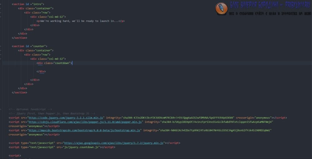 Хорошо, поэтому мы добились определенного прогресса. Теперь пришло время добавить наши обратные часы на нашу страницу.