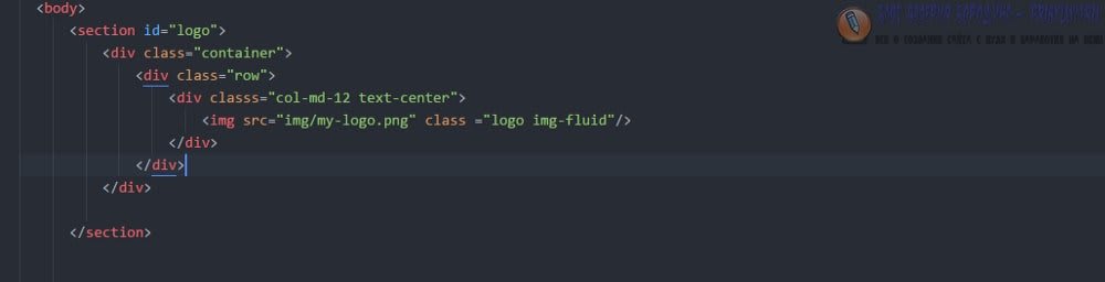<section id="logo"> <div class="container"> <div class="row"> <div class="col-md-12 text-center"> <img src="img/my-logo.png" class="img-fluid"/> </div>