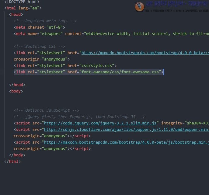 Это даст нам доступ к красивым векторным иконам, которые будут использоваться на нашей странице.