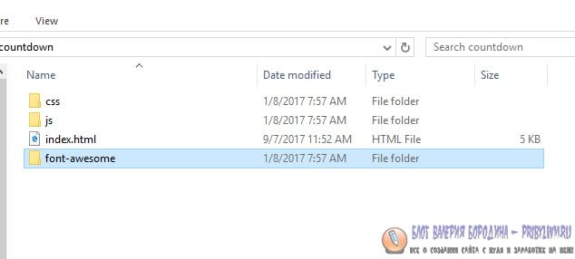 9. Сохраните индексный файл как index.html в папке обратного отсчета.