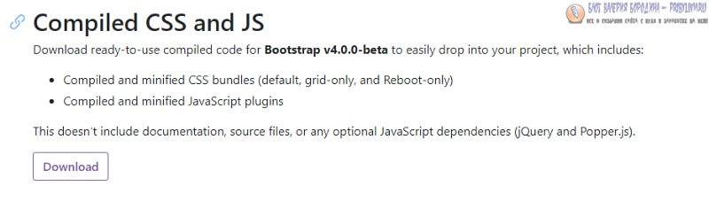 Если Вы перейдете на сайт Bootstrap, вы увидите большую кнопку загрузки и загрузите скомпилированную версию CSS и JS.
