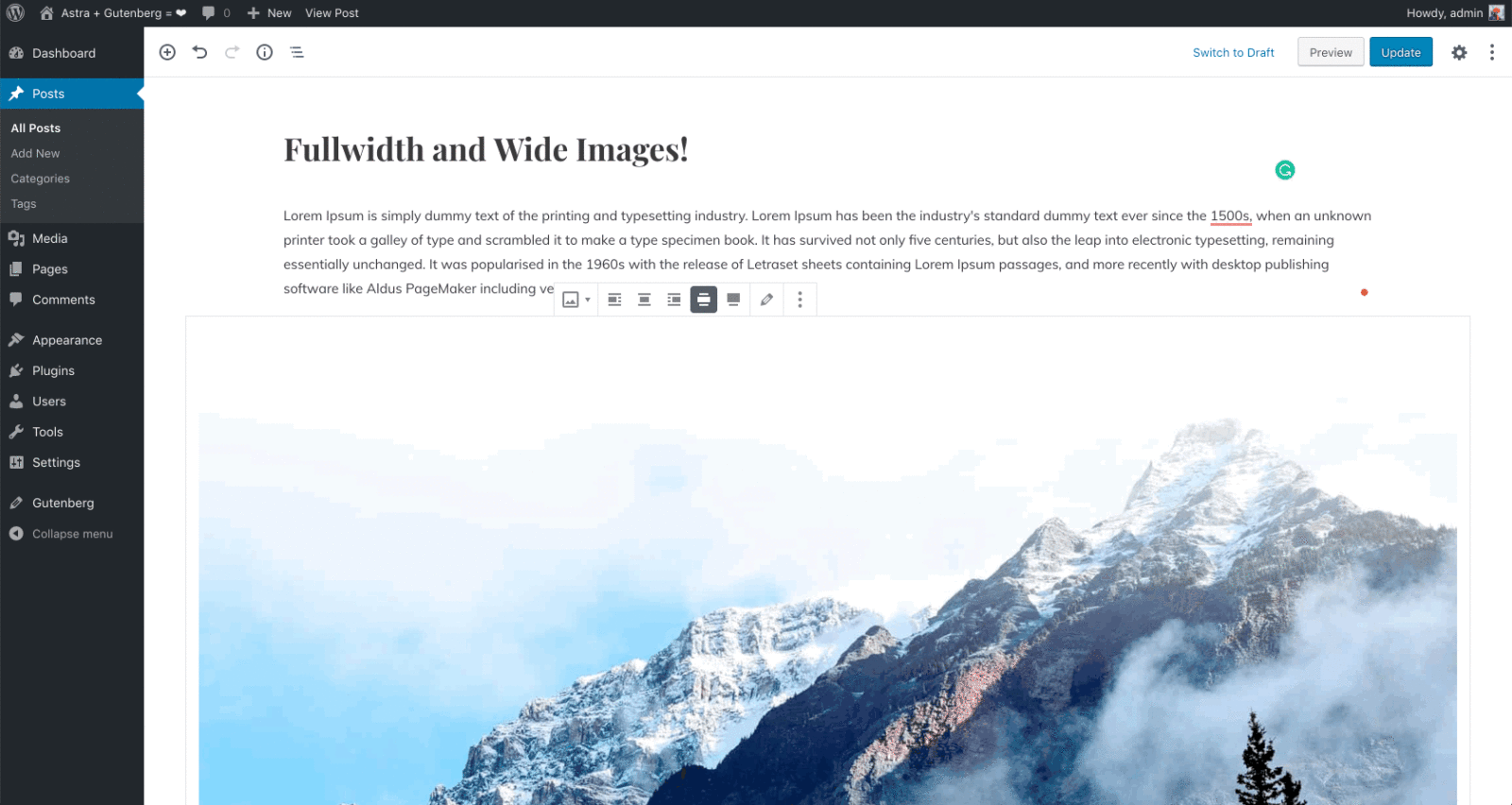 Ниже будет проиллюстрировано, как была реализована функция совместимости Gutenberg в Astra и некоторые из классных способов, которыми они работают удивительно вместе.
