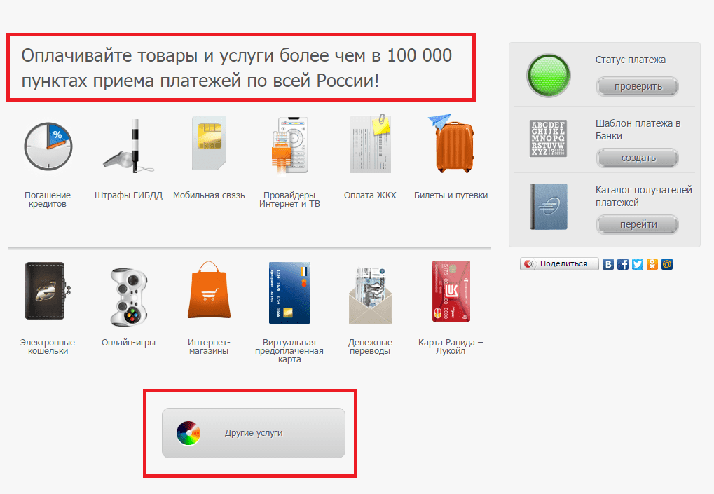 При заходе на главную страницу сайта Рапида по первой ссылке Вы сможете оплатить все, что угодно: