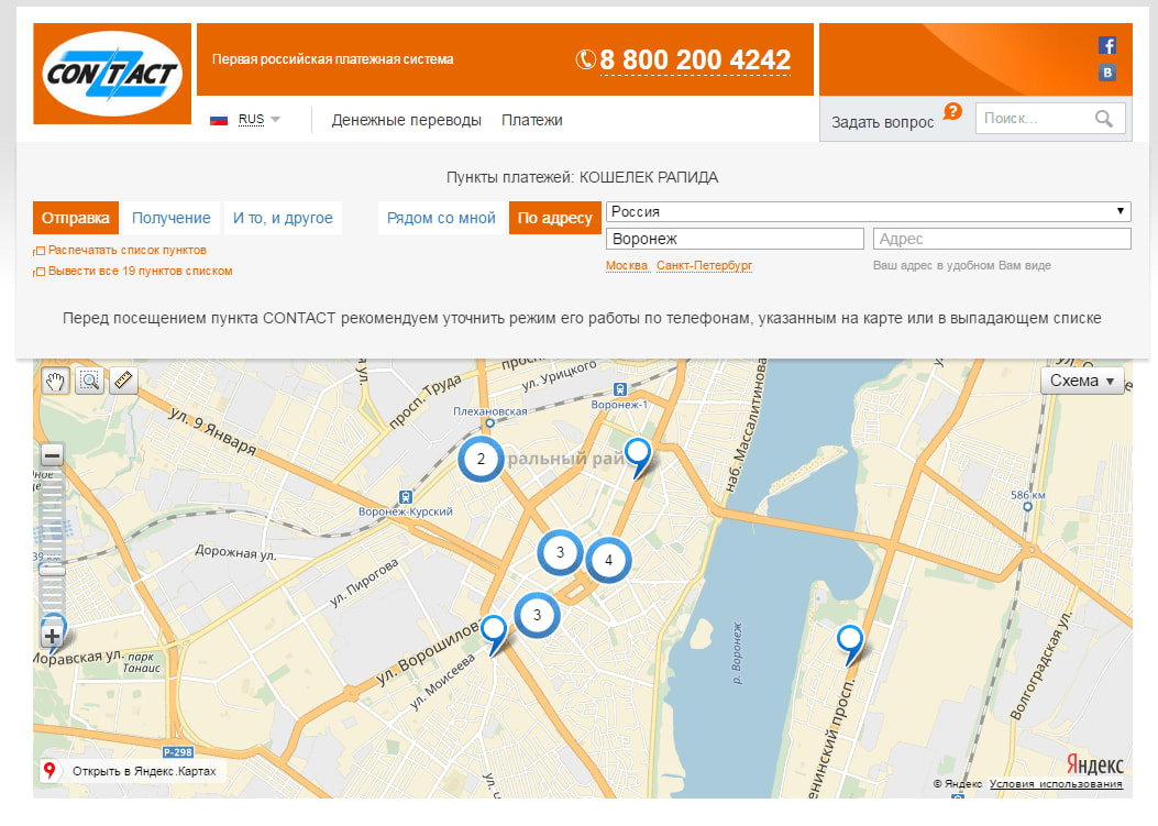 - Через платежную систему CONTACT. Эта услуга платная, 250 рублей, из которых 150 составляет комиссия за услугу, 100 рублей зачисляется пользователю на кошелёк. Но очень удобная, так как все делается очень быстро!