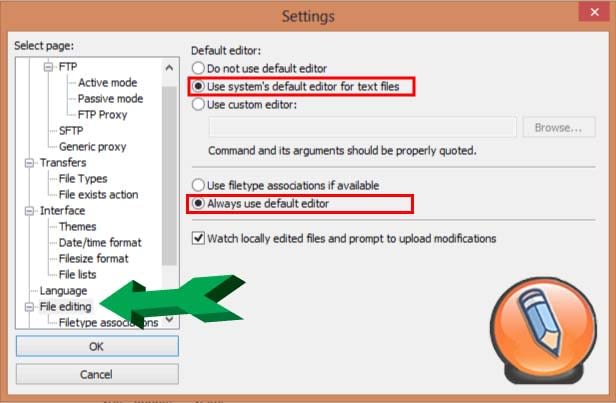 - Для редактора по умолчанию выберите – Использовать системный редактор по умолчанию для текстовых файлов.
