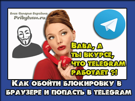 Здравствуйте, уважаемые друзья и гости блога Pribylwm.ru! Я не знаю, многие ли из Вас знают о том, как открыть телеграм канал в своем браузере, обойдя при этом его блокировку? Не многие?! Тогда сейчас расскажу Вам об этом и Вы сможете совершенно беспрепятственно использовать Telegram в своих целях, не опасаясь, что его у Вас вновь отнимут! Поехали …