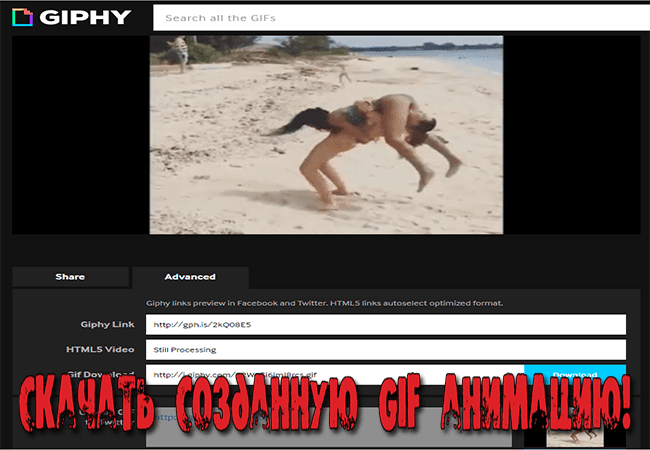 Вы даже сможете сделать gif из видео онлайн в этом сервисе не скачивая его, а просто вставив ссылку на это видео в строку поиска в этом онлайн сервисе.