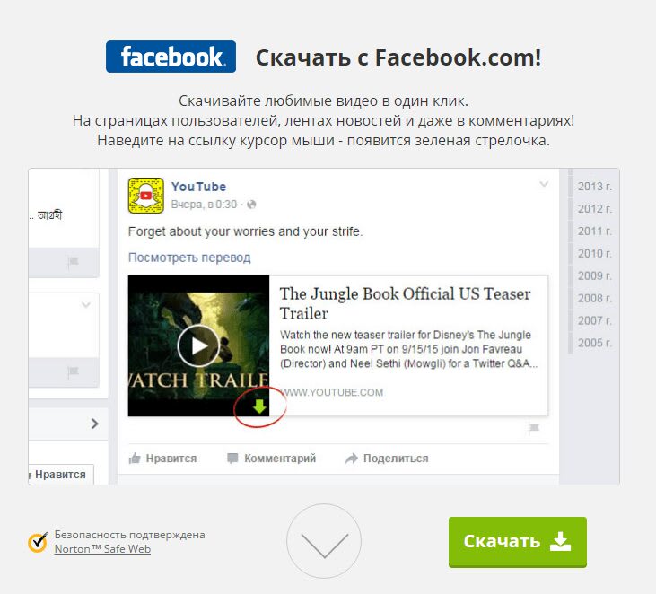 Не останется в стороне и популярный фейсбук. Вы также можете скачать видео с Facebook: