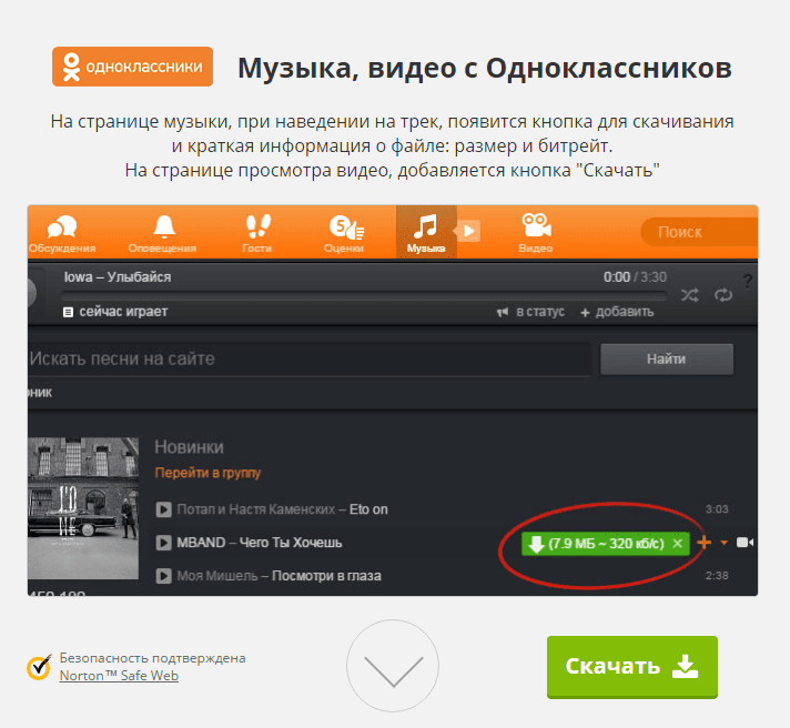 Таким же образом Вы можете скачать видео с Одноклассников: