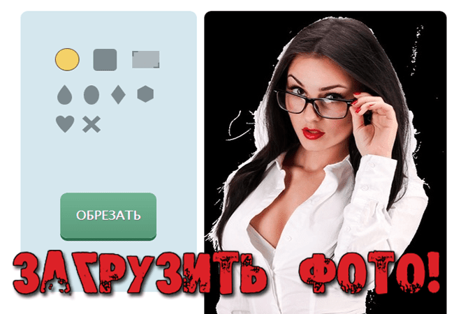 Затем Вам нужно выбрать из предложенных онлайн сервисом значок соответствующий тому каким будет форма вашей картинки или фото. Оно может быть как скругленным, так и разных других форм, как Вы видите на скриншоте. после выбора формы для вашего фото онлайн, Вы жмете кнопку “Обрезать“. Но перед этим кликните мышкой на ваше фото и подвигайте, чтобы онлайн сервис смог определить, что Вы хотите сделать и вашей картинки. Как Вы видите на фото выделился круг или любой другой объект. который Вы выбрали.