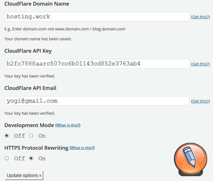 - Электронная почта CloudFlare API – Ваш зарегистрированный адрес электронной почты в плагине.