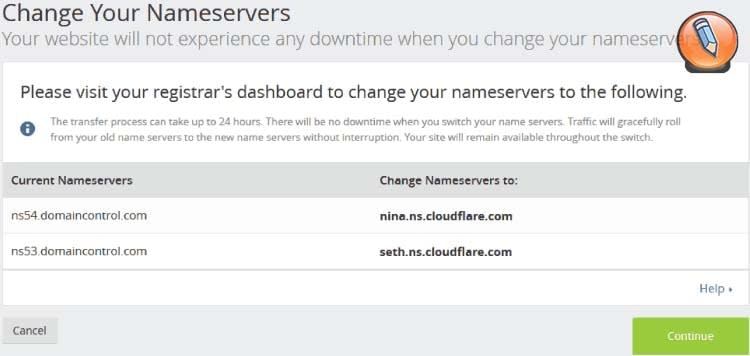 Чтобы изменить серверы доменных имен на «CloudFlare DNS» >, перейдите в свою учетную запись регистратора доменов (веб-сайт, на котором Вы зарегистрировали свой домен). Затем перейдите в раздел «Управление DNS» домена. Нажмите кнопку «Изменить серверы имен» и добавьте серверы имен плагина.