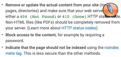 К сожалению, процедура запроса на удаление является только временной (90 дней), в течение которой Вы захотите выполнить сложную задачу по настройке таких URL-адресов, чтобы они отвечали статусом 404 или 410 на постоянство.