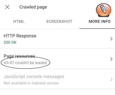 GSC показывает информацию, которую Вы можете использовать для устранения неполадок. Вот пример, где ресурсы страницы не загружаются. Детали для них идентифицируют их как изображения. Это дизайн для этого сайта. Оригинальные изображения для этого сайта защищены от горячих ссылок и простой кражи . Логично, что Google не может получить защищенные изображения без авторизованного пути к этим URL-адресам ресурсов.