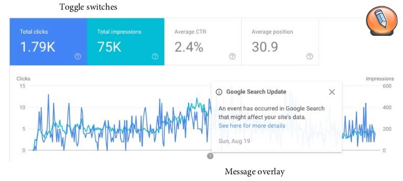 Большинство практиков SEO будут желать исследовать данные, ограниченные для принятия стратегических решений. Открыв отчет «Производительность», Вы найдете элементы управления для этого контекста – элементы управления для определения данных сайта, которые анимируют диаграммы в режиме реального времени.