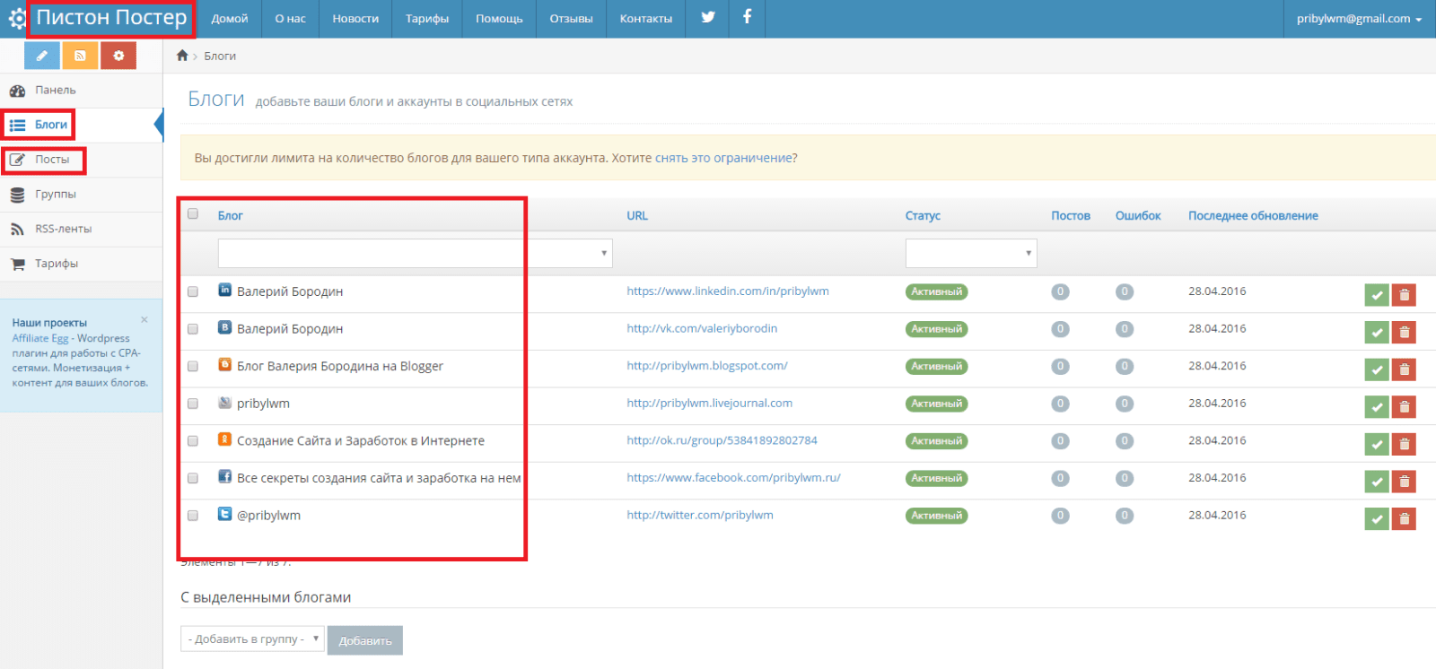И что самое важное этот сервис, Пистон Постер разрешает своим пользователям делать кросспостинг бесплатно в семь социальных сетей, которые Вы сами сможете выбрать.