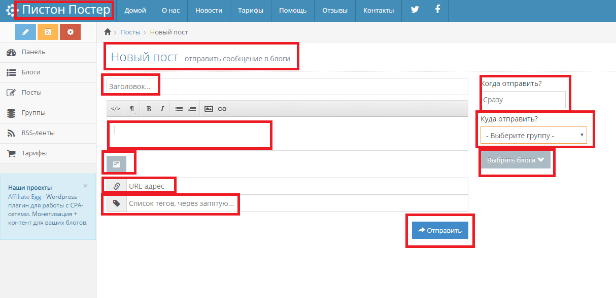 Кросспостинг в социальные сети при помощи сервиса Пистон Постер