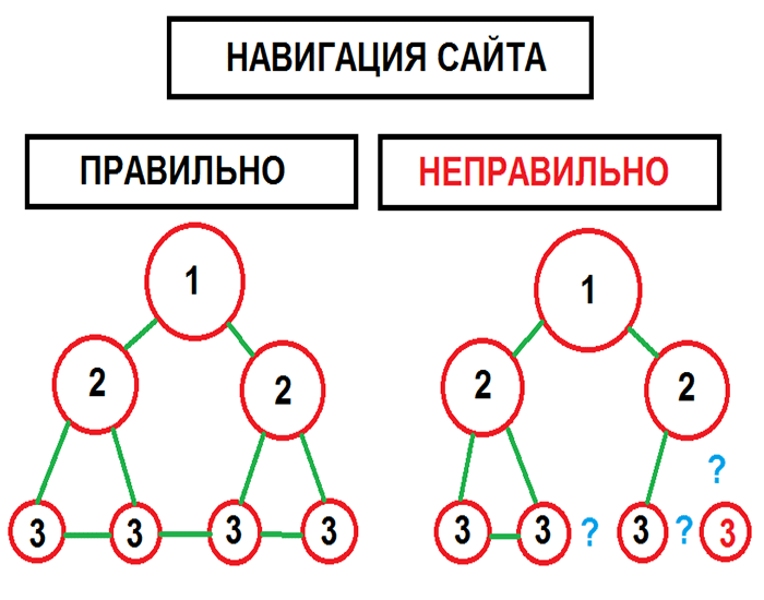 Вот вам схемы навигации на сайте одна правильная, другая соответственно неправильная: