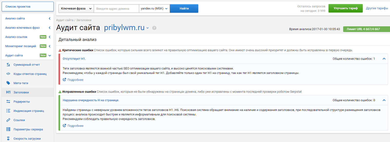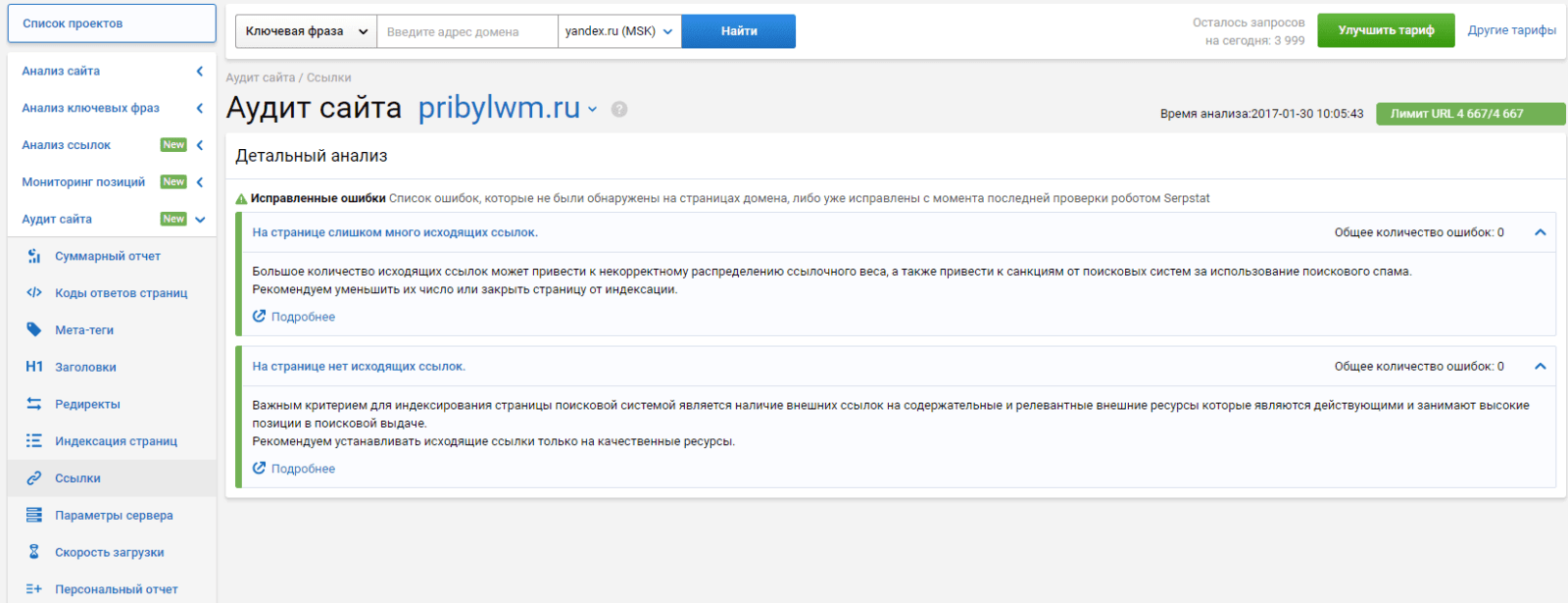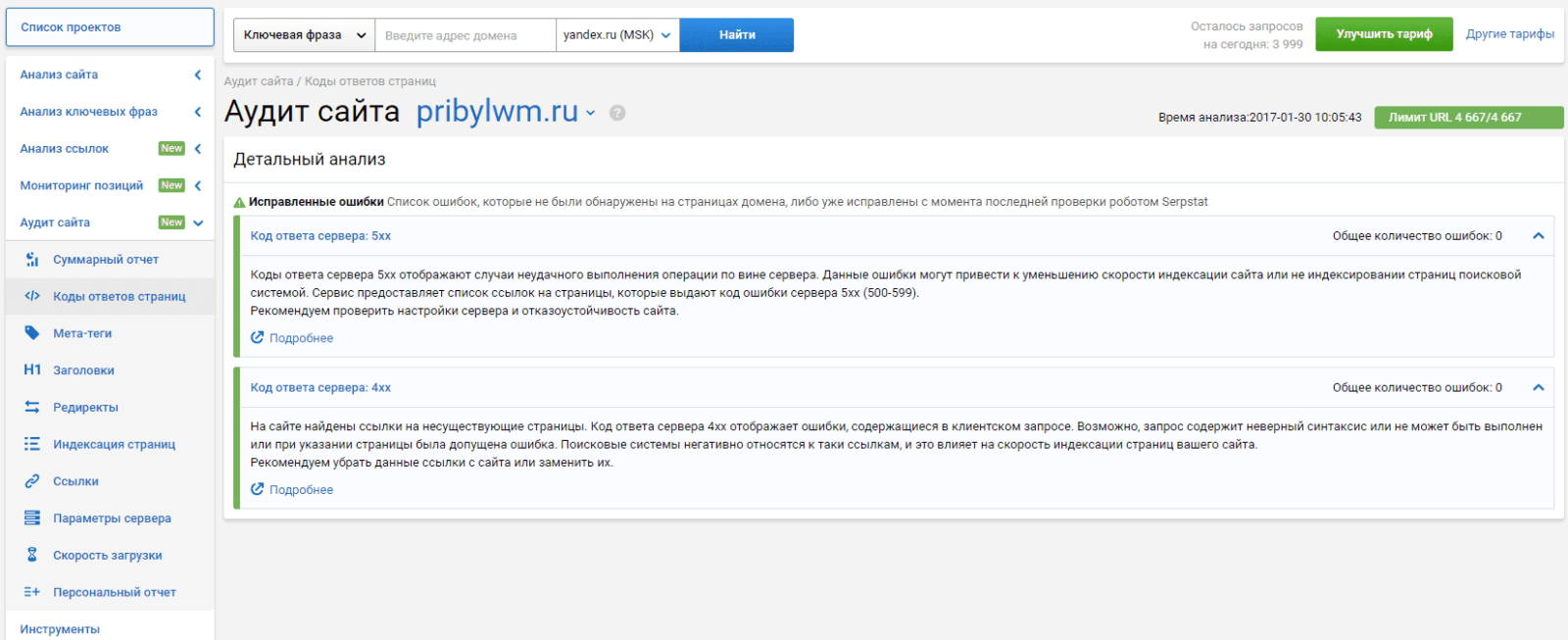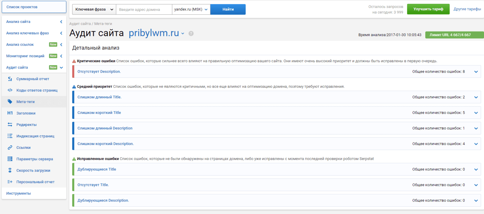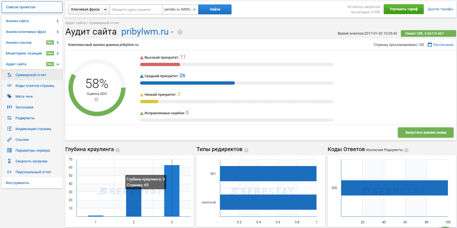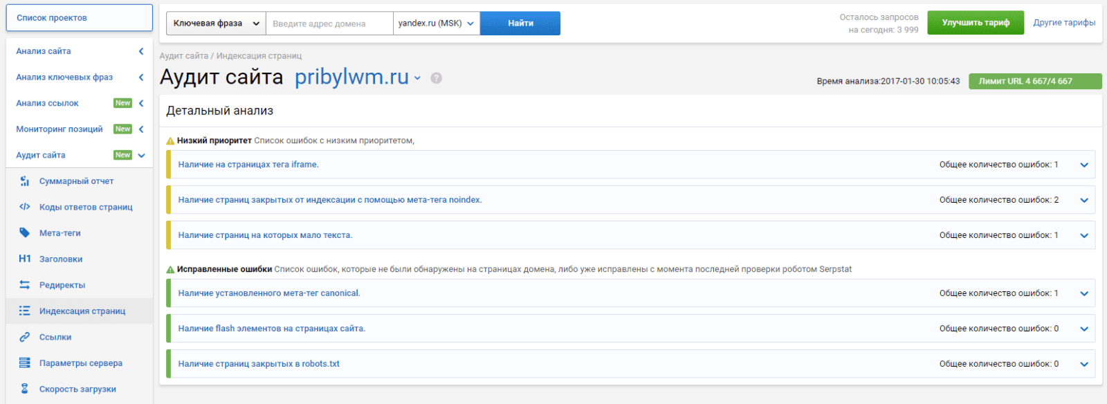 Вот видите друзья, что сервис Serpstat дает очень подробный отчет по всем значимым для SEO сайта параметрам, которые нужно обязательно учитывать.