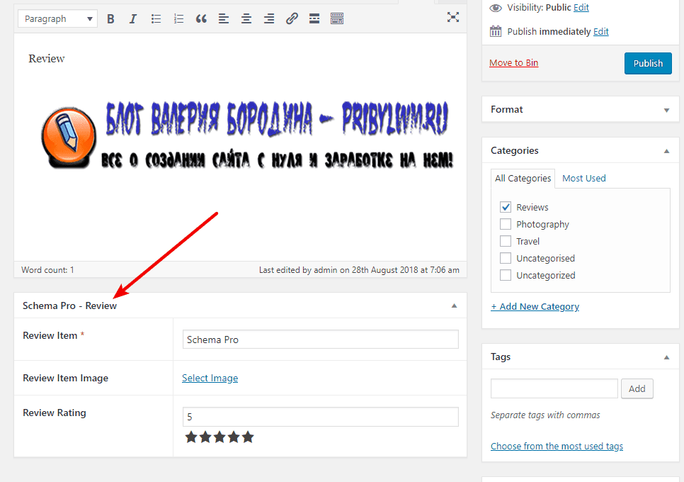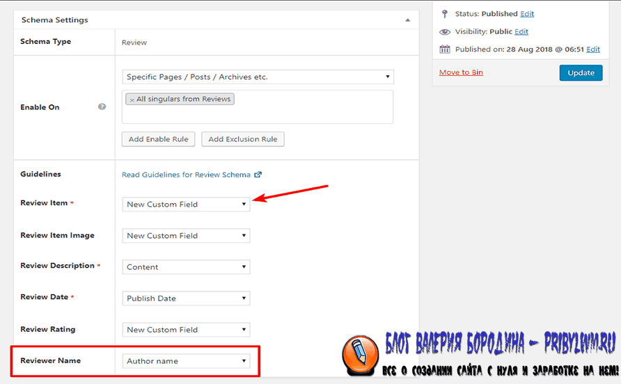 Для всей другой информации (дата публикации, имя рецензента и т. д.) Schema Pro автоматически вытащит информацию с вашего сайта WordPress – Вам не нужно ничего делать.