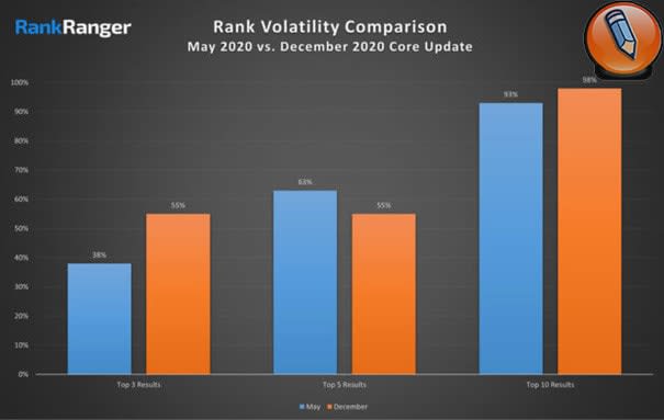 Тот факт, что декабрьское обновление было больше, чем майское, подтверждается анализом RankRanger, показывающим самые большие различия в результатах ТОП-3.