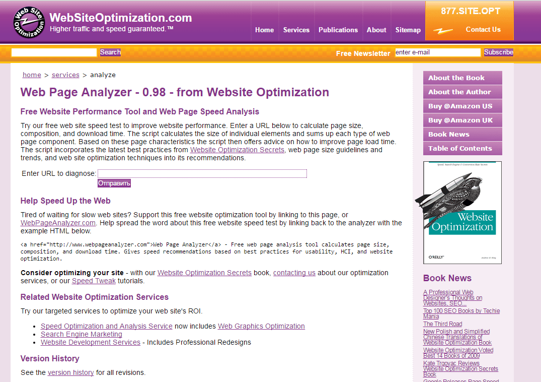 - WebPage Analyzer – прекрасный сервис оценки вашего сайта. Простой в использовании, но очень информативный