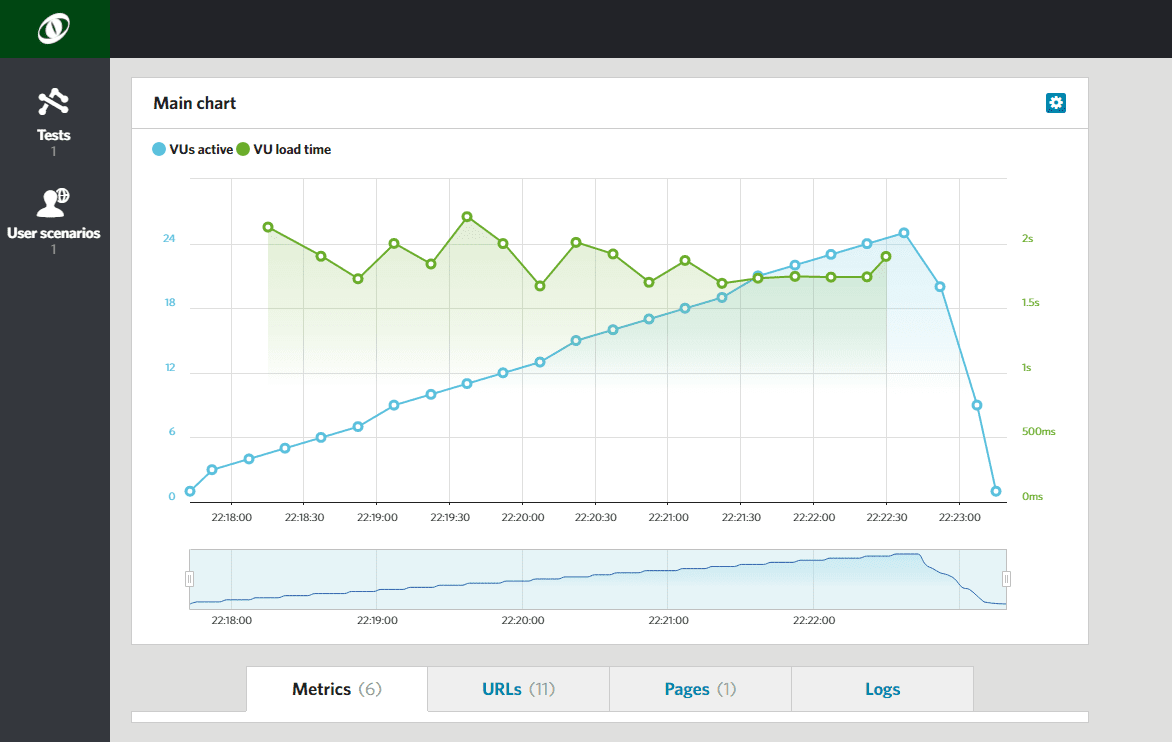 - Load Impact – очень удобный сервис оценки скорости загрузки сайта выдающий по окончании результат в виде графика