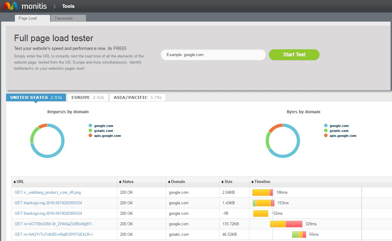 - Monitis Tools – этот инструмент оценивает скорость загрузки вашего сайта из разных участков земного шара