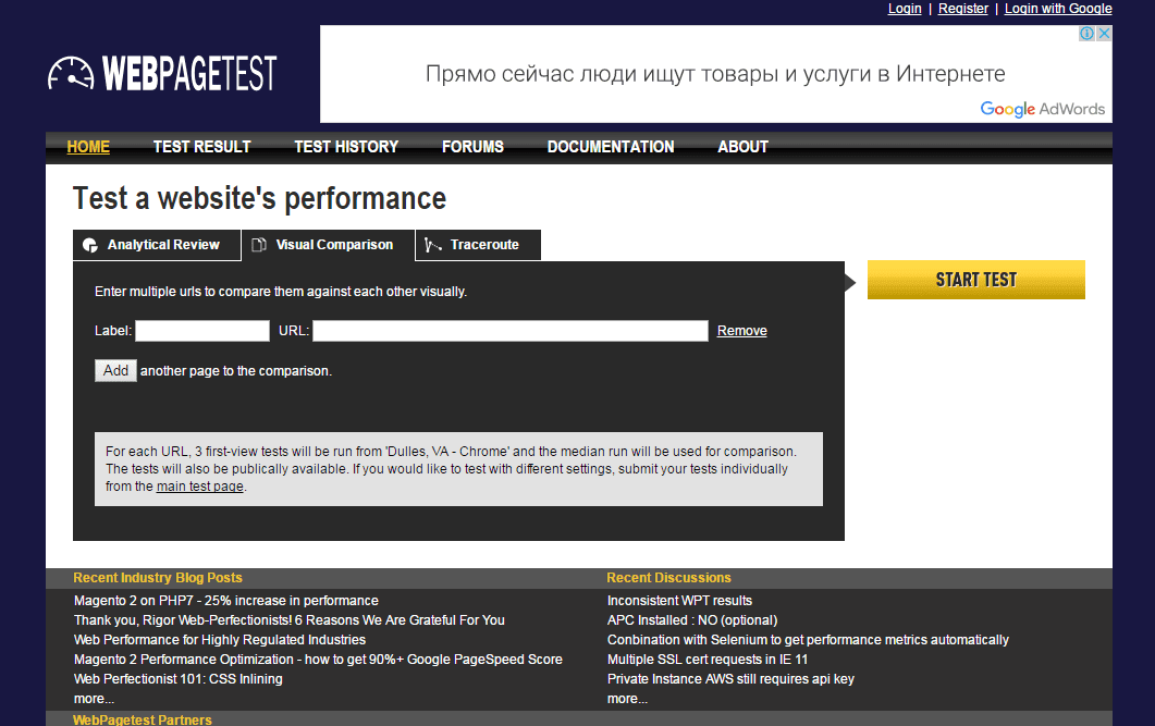 - WebPageTest – это не менее известный и многофункциональный инструмент для оценки вашего сайта