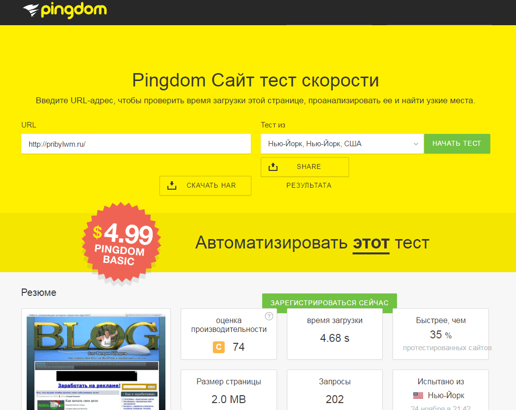 - Pingdom Tools – стоит на втором месте после инструмента от Гугл