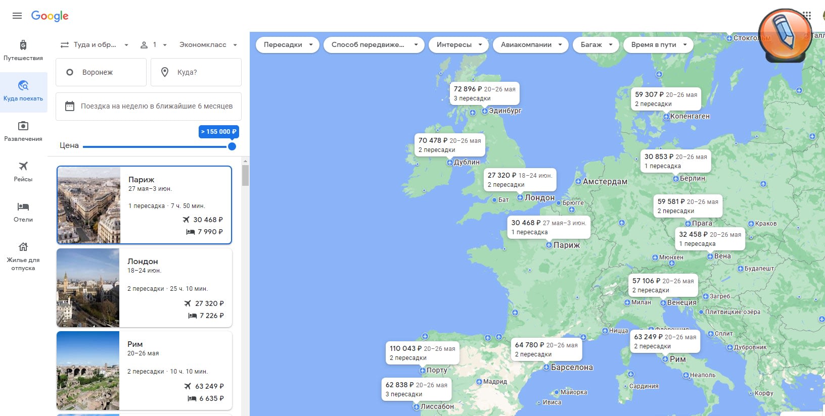 Google Travel – это поисковая система Google, которая помогает Вам спланировать поездку. Это позволяет Вам быстро и эффективно находить рейсы и жилье в выбранном месте, а также «открывать», то есть узнавать места, которые стоит посетить, когда Вы там находитесь.