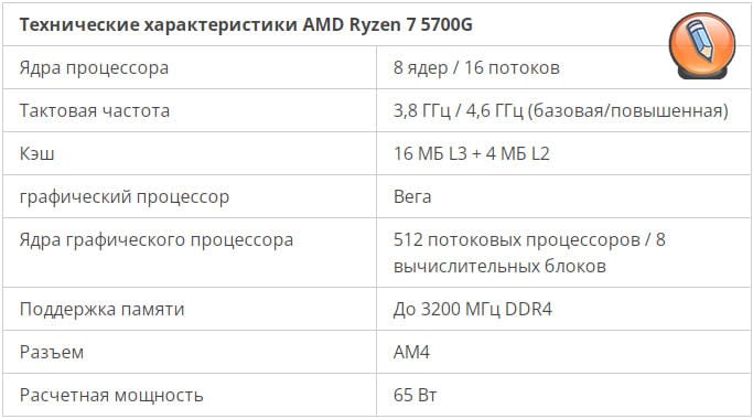 Лучший APU, который Вы можете купить для своего ПК. Он имеет самую мощную встроенную графику, которая может превзойти даже GeForce GT 1030, хорошую бюджетную дискретную видеокарту от Nvidia. Кроме того, Ryzen 5 5700G довольно мощный и лишь немного медленнее, чем Ryzen 5 5800X. AMD Ryzen 7 5700G — это 8-ядерный 16-поточный процессор, построенный на новейшей архитектуре Zen 3 по 7-нанометровому техпроцессу. Что касается графики, то здесь используется графика Vega с 8 вычислительными блоками и 512 потоковыми процессорами. Тактовая частота графического ядра составляет 2000 МГц, а память DDR4 используется совместно с системой. Встроенная графика или iGPU довольно мощная и до 35% быстрее, чем GeForce GT 1030. Это большое достижение, и Вы сможете играть в большинство игр на низких и средних настройках с комфортной частотой кадров.