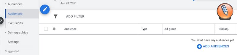 Перейдя на вкладку “Аудитории“, нажмите синюю кнопку с плюсом.