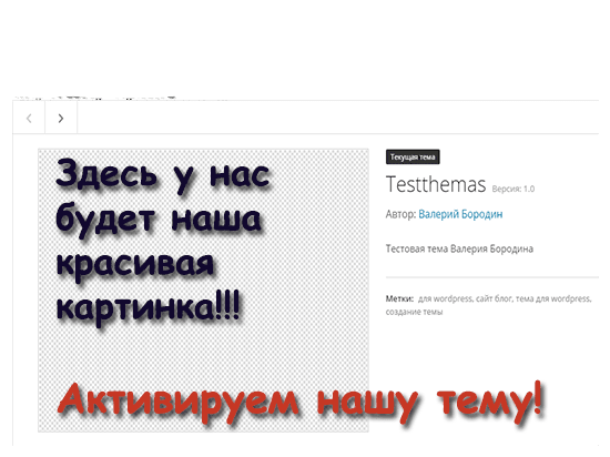 А на последок давайте с вами сделаем красивую картинку, как я обещал, вывода нашей темы в админке WordPress.