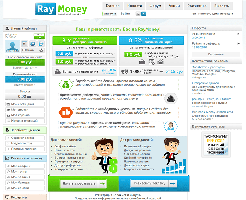 Так, что друзья, не проходите мимо данного сервиса. Обратите должное внимание на проект RayMoney и Вы уже сегодня сможете заработать свои первые деньги в интернете, для своих нужд.