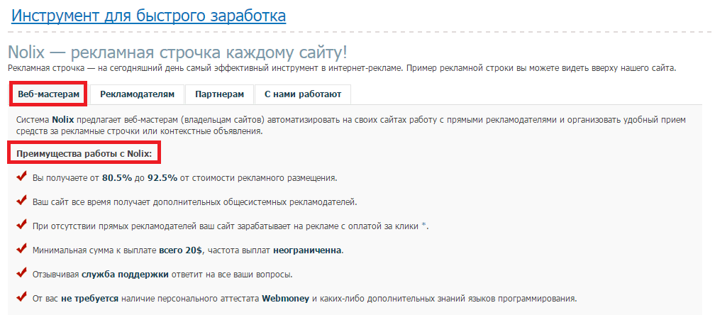 Nolix – это инструмент для быстрого заработка на своем сайте или блоге, который доступен даже новичку с небольшим посещением вашего сайта и нулевым тиц:
