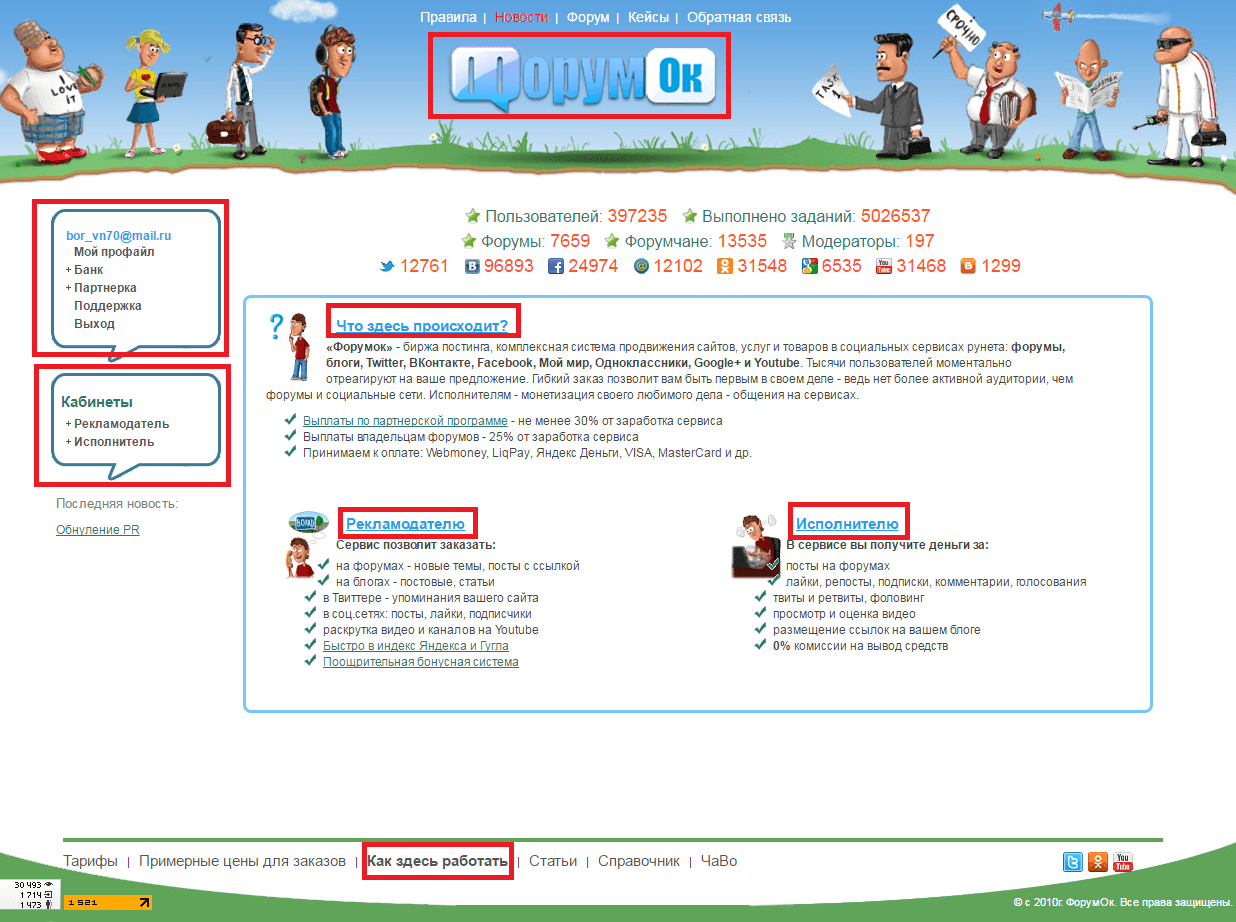Так, что Вы на бирже forumok Вы можете быть как рекламодателем и продвигать свой сайт, блог, товар или исполнителем, если хотите узнать, как заработать в интернете.