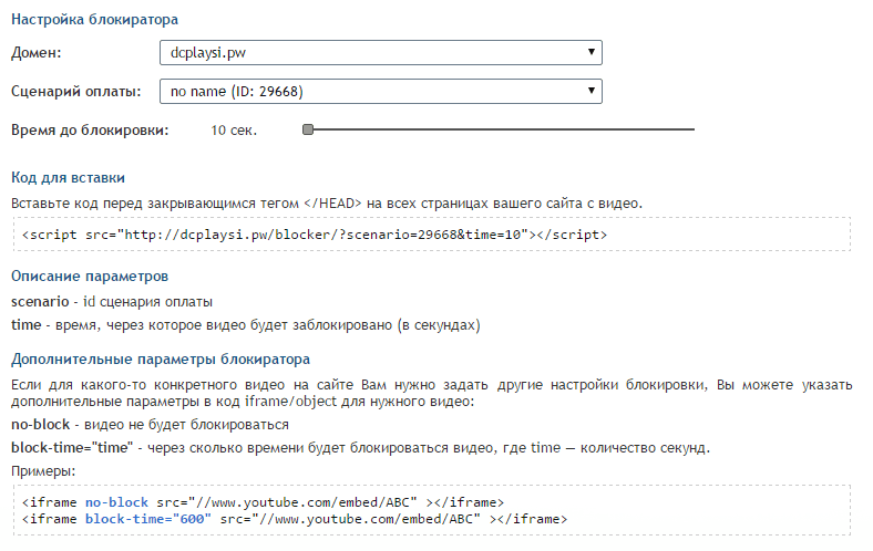 Блокиратор видео – это функция, которая вам поможет заинтересовать киномана началом интересного фильма, а в определенный момент фильм остановится и попросит его разблокировать, чтобы посетитель смог его смотреть дальше. Время для блокировки фильма Вы устанавливаете самостоятельно. Также с помощью данной функции Вы сможете сливать трафик с такой популярной социальной сети как Вконтакте и видеохостингов: YouTube, RuTube, Vimeo и другие, которые Вы сможете подключить дополнительно.