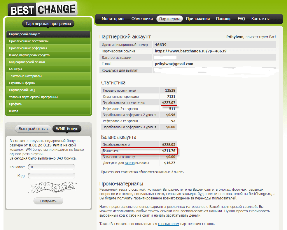 Я тоже сначала, когда начал пользоваться данным обменником, как-то не придал большого значения партнерской программе предлагаемой сервисом BestChange. И как оказалось зря!