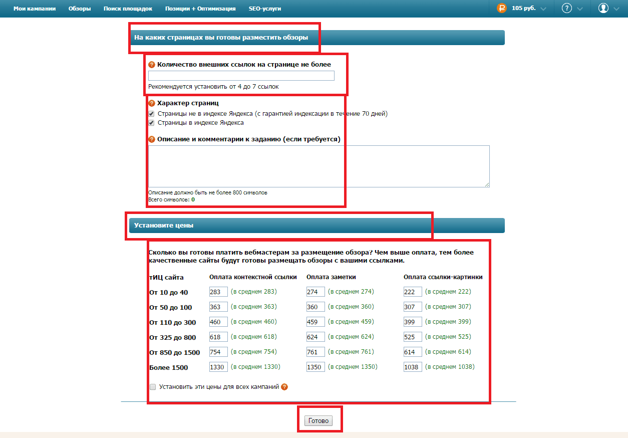 Далее Вы попадаете на страницу “Добавление кампании” в GoGetLinks. Думаю, что здесь также объяснения ни к чему. Все предельно ясно и понятно, что и где нужно заполнять и писать. Смотрим скриншоты и заполняем поля своими данными. Если, что-то будет вам не понятно, то обязательно задавайте вопросы в комментариях с статье и я вам отвечу в кратчайшие сроки.